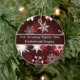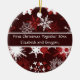 A beautiful and elegant Christmas ornament with white and dark pink snowflakes on a wine red background. The text says "First Christmas Together 20xx" with place for names, but you can change it very easily. The text and dark band on the front can be changed. Click on "customize it" to change the font.