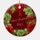 Give a personalized holiday gift to newlyweds celebrating their first Christmas together with this tree ornament.