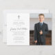 First Communion Black White Minimalist Boy Photo Invitation