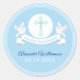 This First Communion envelope seal features a double white frame with blue cross, doves and white banner with text "My First Communion" on a blue background. Easy to personalize with custom options. Use the 'Personalize" button to customize the product, or add text.