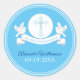 This First Communion envelope seal features a double white frame with blue cross, doves and white banner with text "My First Communion" on a blue background. Easy to personalize with custom options. Use the 'Personalize" button to customize the product, or add text.
