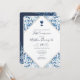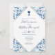 Elegant and modern First Communion invitation card. Elegant Classic blue announcement for Communion featuring beautiful watercolor blue foliage.