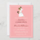 First Communion Brunette Girl Peach Pink Invitation