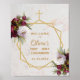 First Communion Burgundy Peonies on Marble Welcome Poster