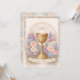 First Holy Communion, Eucharistic devotion, and sacred celebration are beautifully reflected in this traditional design centered on the Most Blessed Sacrament. A radiant golden chalice bearing the Holy Cross stands beneath the Sacred Host marked with the holy monogram IHS, surrounded by a gentle arrangement of pastel florals in soft spring tones. The inscription O Sacrament Most Holy proclaims love and reverence for Our Eucharistic Lord.