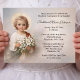 A reverent First Holy Communion invitation featuring the Child Jesus holding white lilies, symbols of purity and innocence, rendered in a soft, traditional painterly style. The sacred image is placed on the left and gently washes into a serene background on the right, providing ample space for custom text. Ideal for celebrating a child’s First Holy Communion with dignity and beauty rooted in Catholic tradition. All text is fully customizable, making this invitation suitable for boys or girls, parish celebrations, and family gatherings following the Holy Sacrifice of the Mass.