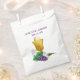 A lovely favour bag for a First Holy Communion features a gold chalice with Eucharist, grapes, a white candle and white lily on lace look background. Personalize with name and date if desired. Stickers and other items available with this design.