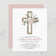 Invite your guests to join in the reverence and joy of the occasion with our First Communion Gold Cross Blush Pink Floral Invitation, a timeless expression of faith and love.