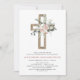 First Communion Gold Cross Blush Pink Floral Invitation