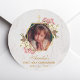 First Communion Photo Gold Pink Orchids Marble Classic Round Sticker