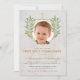 First Communion Photo Greenery Gold Marble Foliage Invitation
