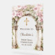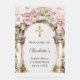 An antique marble arch decorated with blush pink watercolored florals. Personalize and add her name and the date.