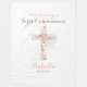Elegant fleece blanket for your first holy communion with a floral cross on a simple white background. Personalize with text, name and date. Makes a thoughtful gift for confirmation.