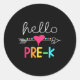 First Day Of Pre K Hello Back To School Teacher Classic Round Sticker
