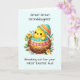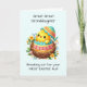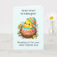 Celebrate your great-great-granddaughter’s very first Easter with this adorable card, filled with the joy and wonder of the season! A sweet little chick breaks free from its shell, surrounded by colourful spring flowers, symbolizing new beginnings. The soft pastel teal background adds a gentle, whimsical touch, making it perfect for a baby’s first Easter keepsake. Inside, a heartfelt message shares warm wishes for a day filled with love, cuddles, and happiness. A precious way to mark this once-in-a-lifetime milestone and create a cherished memory for years to come!