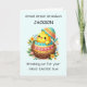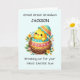 Celebrate your great-great-grandson’s very first Easter with a personalized card just for him! A cute chick hatches from its shell, surrounded by bright spring flowers, set against a soft pastel teal background that enhances the warmth of the season. His name on the front makes this card even more special, creating a one-of-a-kind keepsake for his milestone first Easter. Filled with love and joy, this is a heartfelt way to celebrate his first holiday in a truly personal way!