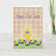 Celebrate the first Easter of a special child in your life with this cute card. My drawing of a cute baby chick in a field of tulips against a soft gingham look background of green and pink