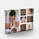 First father's day gift idea -A modern Photo Block with a collage grid created with 4 pictures and message on a rustic wood block pattern.