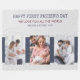 Say Happy First Father's Day with a stylish and personalized photo blanket. The template is set up for you to add 3 of your favourite photos and you can also edit all of the wording including the occasion, your message, names and year. The design features typewriter text and modern typography with a colour palette of light grey, deep blue and burgundy. The sample wording currently reads "Happy first father's day - we love you all the world - [your names and year]". Please browse my store for more father's day gifts.