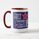 This is a handsome blue and red graphic design that says First Father's Day.  Be sure to change or delete the year on this mug.  Great for the new father that you know.