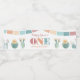 Sophisticated Autumn tones decorate this Mexican Fiesta inspired 1st birthday party water bottle label design featuring papel picado and watercolor cacti.