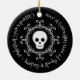 An ornament to commemorate a first Halloween together. This features hand drawn skulls and swirly wreath. Add a date on the front, and names on the back.
