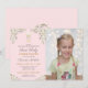 Elegant First Holy Communion floral invitation with a charming rustic and vintage-inspired design including chalice. The back showcases a boho-style cross adorned with delicate watercolour flowers and lush greenery. Personalize with your own photo and customize the text to suit a Christening or Baptism, making it perfect for your special occasion.