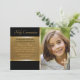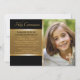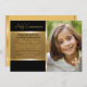 Elegant gold and black Holy Communion, baptism or christening photo invitations for boy or girl- Custom photo on the right side overlaid with a faux foil gold cross in the bottom right corner. Background on the left is black and gold ribbons and faux gold metallic sprinkled with glitter for a shiny look. Reads 'Please Join Us for First Holy Communion of' in black with personalized name below in elegant, gold colour script and information below in matching gold. Gold look vertical ribbon in the centre separates the two halves. Back has matching, solid gold colour background and gold metallic look ribbon borders. Note: All images are printed. Not actual glitter or metal. Elegant, gold communion invitations. Click Customize option to change text colours, size, and font styles. Visit our online Zazzle.com/angela65 shop for more personalized photo invitations.