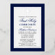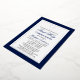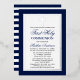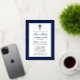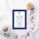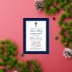 Elegant Navy Blue and Gold First Holy Communion Invitation with Cross. Silver Foil Frame. Silver Foil Cross. Striped Back.