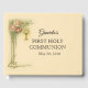 This is a traditional Catholic First Holy Communion image featuring a beautiful chalice, host, and pink roses. All texts and fonts may be customized.