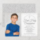 An elegant First Holy Communion save the date invitation featuring delicate silver stardust. You can personalize with your celebration details in chic silver text and a special photo. Designed by Thisisnotme©