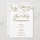 An elegant first holy communion invitation featuring delicate white blossom framing your first holy communion details in elegant gold typography. Designed by Thisisnotme©