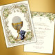 Celebrating the Sacrament of First Holy Communion is a wondrous occasion. This traditional Catholic custom-designed vintage First Holy Communion Invitation with a gold chalice and the Holy Eucharist with white and gold floral accents overlaid on a vintage frame is sure to express the beauty and solemnity of this special day. All text and fonts can be easily modified.