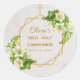 First Holy Communion Floral Gold Lilies Marble Classic Round Sticker