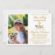 Modern Elegant First Holy Communion Invitation with Cross and Photo. Watercolor Floral includes pink roses, white flowers and botanical greenery. Gold Script.