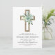 Sage Green Floral Boy's Eucalyptus and Gold Foil Cross Botanical Greenery Watercolor Religious First (1st) Holy Communion Invitations.