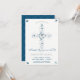 This 4.5" x 6.25" First Holy Communion invitation card features a grey chalice and wafer (holy communion) surrounded by an ornate cross and the words "First Communion" written in an elegant font. Ideal for your boy's special religious occasion, it can be customized to your liking with your child’s name and event information.