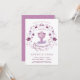 This pretty and modern 4.5" x 6.25" First Holy Communion invitation card features a purple chalice and wafer (holy communion) surrounded by a floral wreath and the words "First Communion" written in an elegant font. Ideal for your girl's special religious occasion, it can be customized to your liking with your child’s name and event information.