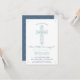This modern First Holy Communion invite features an elegant drawn blue and green floral cross. Ideal for a boy's religious celebration, it can be customized with your child's name and the event details. The background colour can also be changed to your liking.