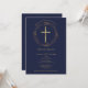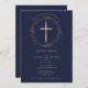 First Holy Communion Navy Blue Gold Cross Floral Invitation