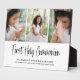 Stylish, modern photo collage plaque. First Holy Communion is featured in a sophisticated typographic script with stylish handwritten lettering on a white background. Customize with a name, the date, the place of the baptism. ideal as a gift or keepsake.