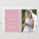 Christian invitation for girl in pink with pink polka dot and lace look faux ribbon trim and white cross accent. Can be easily customized with the details of your event. Invitations come complete with envelopes.