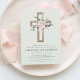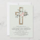 Daughter's Dusty Rose Floral and Eucalyptus - Cross Botanical Sage Green Greenery Watercolor Religious First (1st) Holy Communion Invitations.