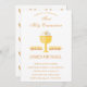 Elegant White First Holy Communion Invitation features a chalice, wheat, and host - symbols of the Eucharist. The words "First Holy Communion" are written in an elegant golden colour script font. The text and background colour can be customized to your liking. A perfect way to invite guests to your son's special religious occasion.The name can be changed to use the card for the little girl communion.