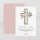 Daughter's Dusty Rose Floral and Eucalyptus - Cross Botanical Sage Green Greenery Watercolor Religious First (1st) Holy Communion Thank You Cards.