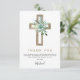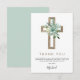 Sage Green Floral Boy's Eucalyptus and Gold Foil Cross Botanical Greenery Watercolor Religious First (1st) Holy Communion Thank You Invitations.