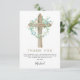 Sage Green Floral Boy's Eucalyptus Cross Botanical Greenery Watercolor Religious First (1st) Holy Communion Thank You Cards.