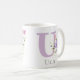 Design features Monogram & Name with Flowers either side in a water colour pastel style. Example name is Una. Initial is the letter U.