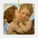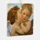 The First Kiss, angels detail (1890) by Bouguereau. A vintage Victorian mythology fine art realist religious portrait painting. Two angels, one kissing the other on the cheek.