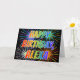This multicolored and fun birthday greeting card design features the message "HAPPY BIRTHDAY," and the common first name "ALEXA" with the letters having a colourful rainbow spectrum like gradient colouring pattern. The background of the front also features a colourful pattern inspired by the appearance of bursting celebratory fireworks. The inside features a customizable greeting message, or could perhaps be cleared and left blank if a message is to be written by hand instead. This might be a fun way to acknowledge the birthday of somebody named Alexa. [~Z0000350]